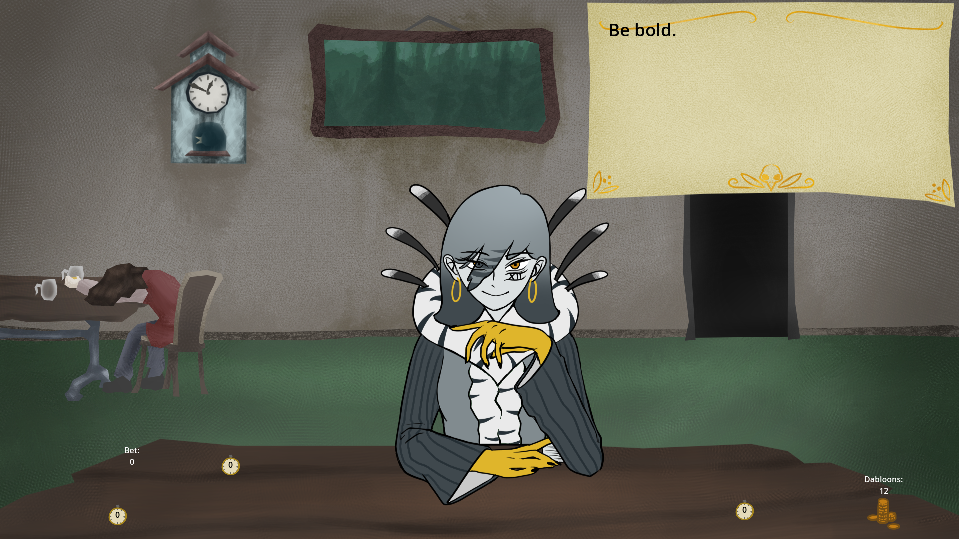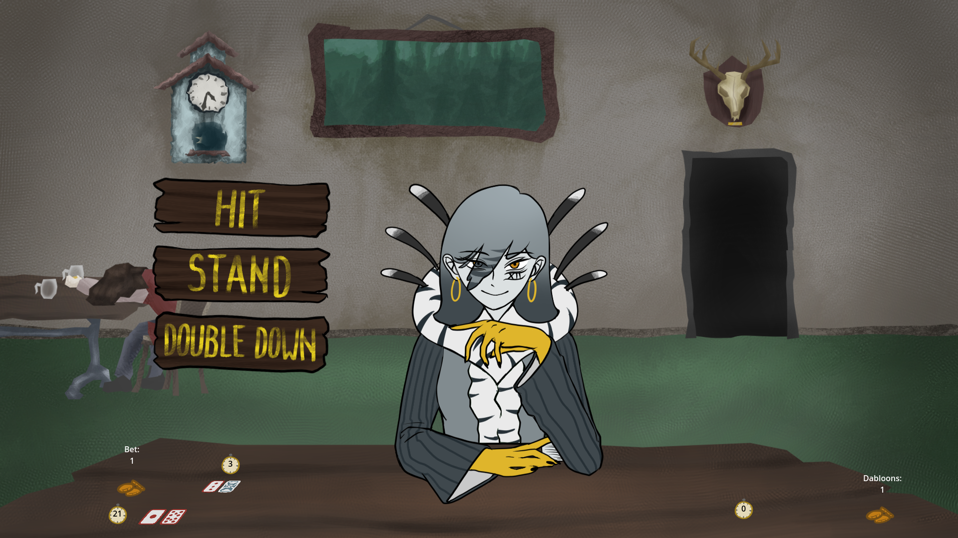 A mysterious woman visited you in a dream and told you your end is near and to meet her in a pub called "The Two Spruces" to play a game of BlackJack. Will you earn as much money as you can before you die?